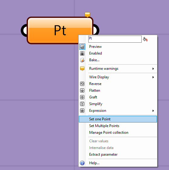 It is necessary to use a point or geometry object to reference this point from Grasshopper. This can be done by right-clicking and setting the point.