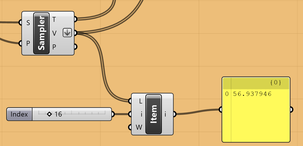 It is notable that the (V) output was flattened. This makes the solution quantities all appear in one branch. It is recommended to connect a panel and experiment with what flatten, graft, simplify, and reverse do for manipulating data.