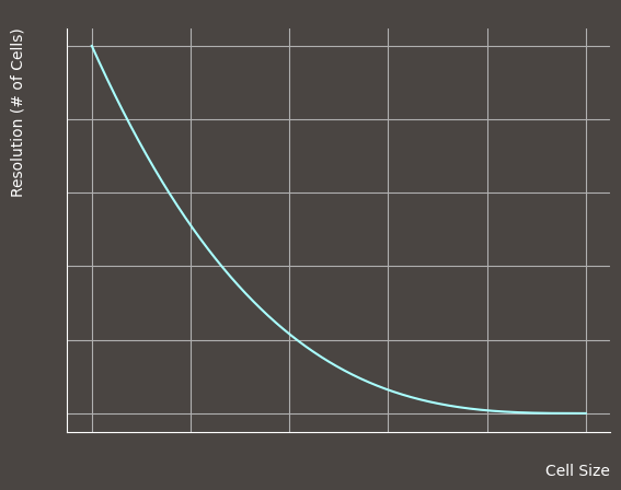 Resolution is the maximum number of finite element “cells” used to compute an approximate solution of the given analysis problem. These cells create a “solution grid” where only the cells that intersect the solid are included in the actual resolution count. Each finite element cell is a cube with side length equal to the “cell size”. Due to the cubic scaling of resolution with respect to cell size it is easy to select a cell size that yields an unexpectedly large resolution.